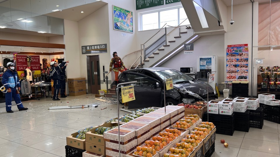 7日午後2時半ごろ、店舗関係者から「屋上駐車場から車が落ちてきた」と消防に通報がありました。視聴者提供