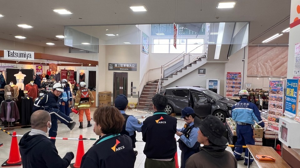 7日午後、北海道釧路市のスーパーマーケットで屋上の駐車場から乗用車が転落し、1人が病院に運ばれました。視聴者提供