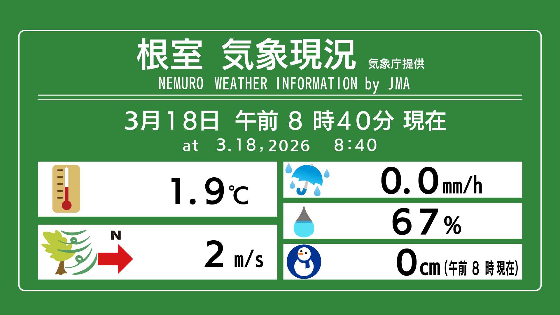HBC情報カメラ・いまの根室花咲港 北海道最東端の街・根室市。港町ですが、根室湾側には根室港(区)、根室半島南側には花咲港(区)があります。花咲港(区)は日本一の水揚げを記録する年もあるサンマ漁のほか、サケ・マス漁、タラ漁などが行われ、地元船に加え外来船の利用も多くなっています。情報カメラは花咲港を見下ろす海抜約25mの高台に設置されています。 <いまの気象現況> 北海道のこんなところにあります