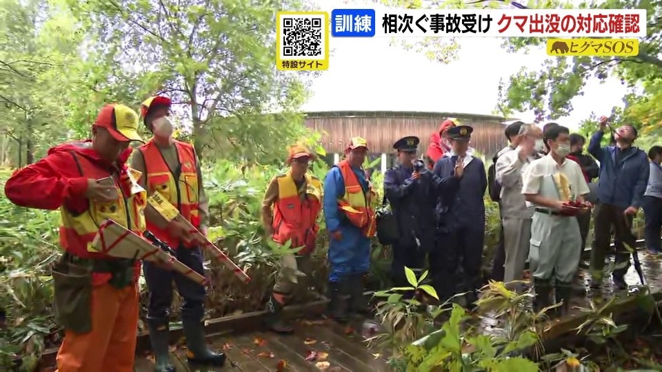 多くの住民が訪れる公園でクマが出たことを想定した訓練が、25日、北海道の野幌森林公園で行われました。