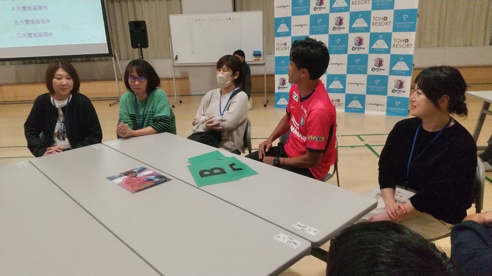 また設立の記念として「セレッソひがしかわ会」からは町内産のクラフトジンや日本酒、米などが、セレッソ大阪からはフラッグがそれぞれ贈呈されました。町民と交流する元セレッソ選手・丸橋祐介さん