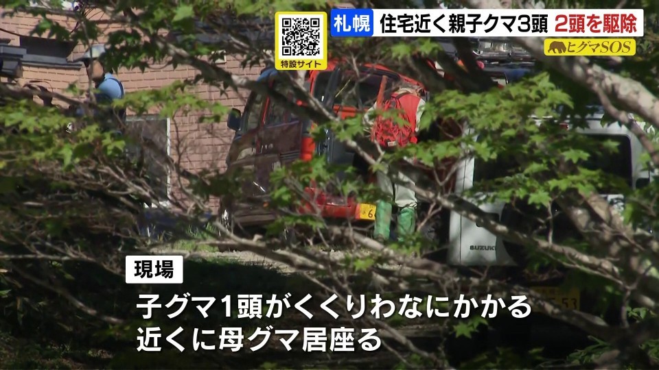 札幌市の職員が確認したところ、子グマ1頭が住宅近くのくくり罠にかかって動けなくなり、近くには母グマが居座っていました。