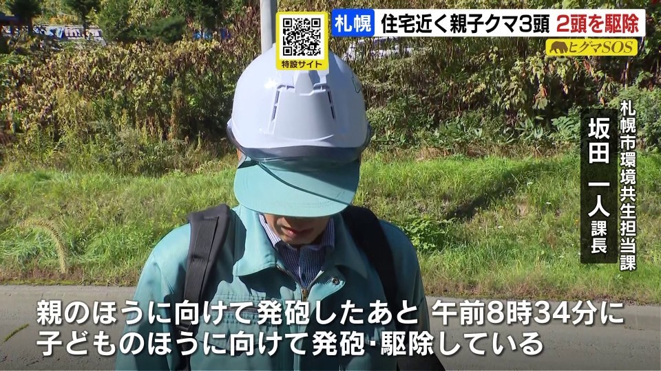 「親グマに向けて発砲したあと、午前8時34分に子グマに向けて発砲・駆除している」
