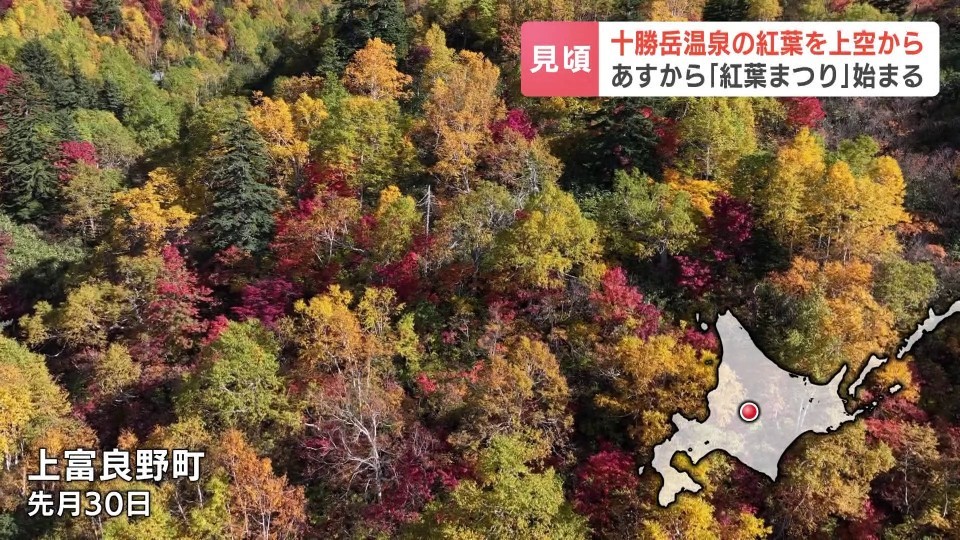 かみふらの十勝岳観光協会によりますと、紅葉はいまが見頃で、4日からは「十勝岳紅葉まつり」も始まります。