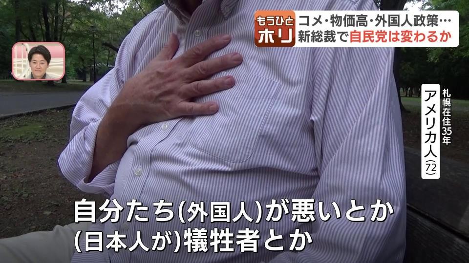 「自分たち(外国人)が悪いとか、(日本人が)犠牲者とか、違う文化が悪いとか問題とか、5人のリーダーのスピーチより、自民党が何をするのか、動くのか動かないのか知りたい」