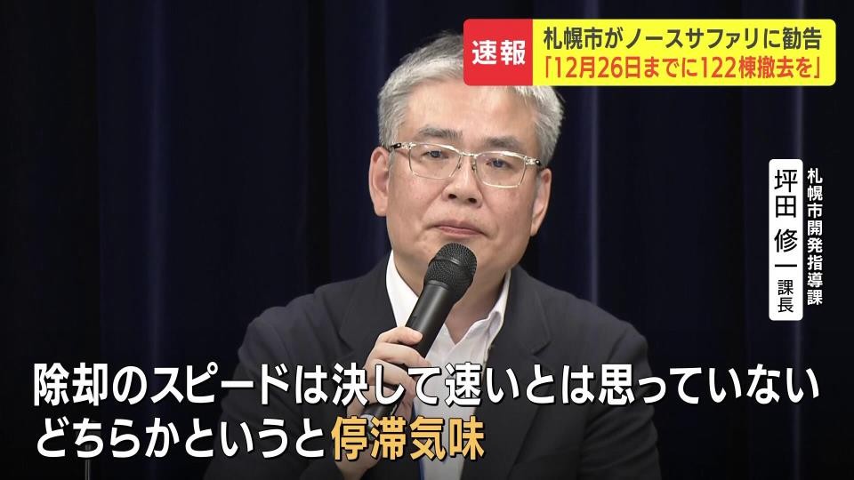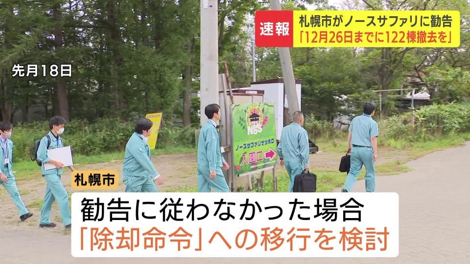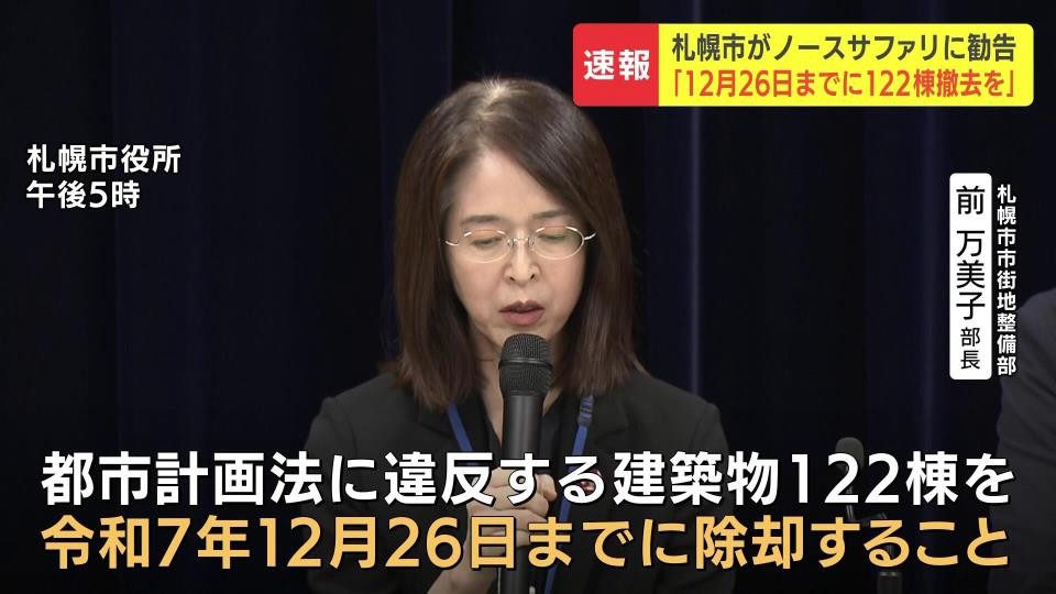 札幌市はこれまで、文書による指導や立ち入り検査を再三行ってきましたが、今回の「勧告」に従わなかった場合、法律に基づく「除却命令」への移行を検討していることを通告したということです。