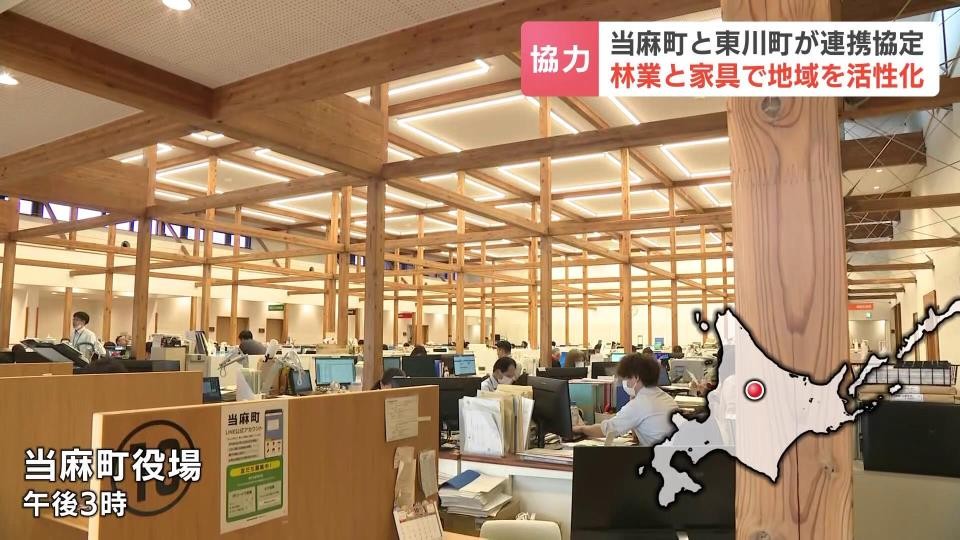 林業と家具で地域活性化 隣りの町どうしが連携協定 当麻町「林業の付加価値をさらに高める」東川町は小学校のイスや机などに活用
