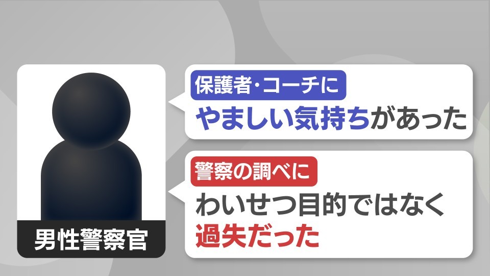 保護者も同席する中、目撃したコーチが問いただすと、警察官は頭を下げて謝罪し、「やましい気持ちがあった」と現場で説明したといいます。男性警察官の当初の言い分