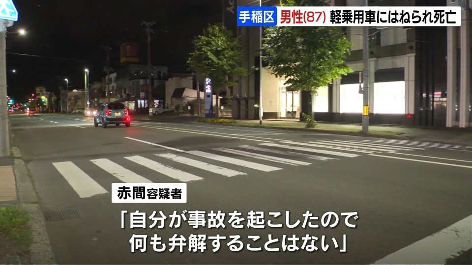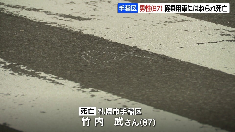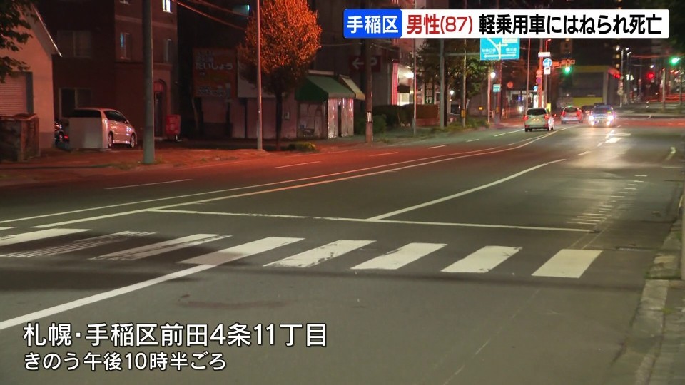 5日夜、札幌市手稲区の道道で、87歳の男性が軽乗用車にはねられ死亡しました。