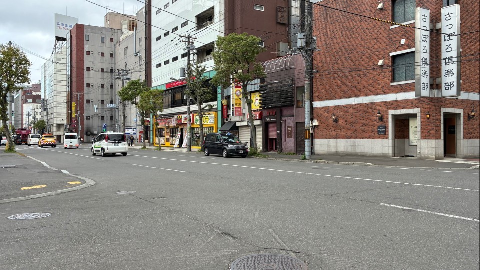 警察によりますと、10月7日午前5時ごろ、札幌市中央区南5条西6丁目付近の路上で、タクシーに乗車していた男が突然、走行中のタクシーのドアを開けようとしました。強盗事件発生現場(札幌市中央区南5条西5丁目)