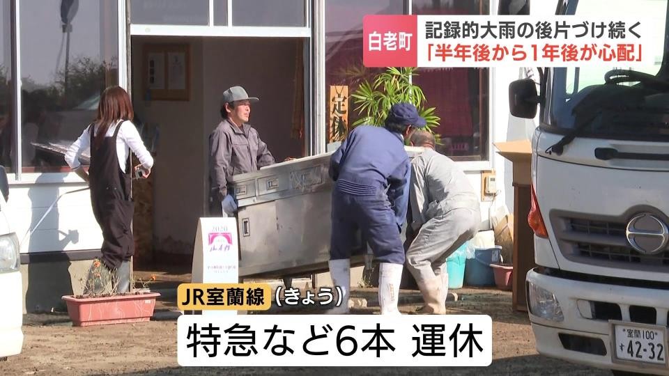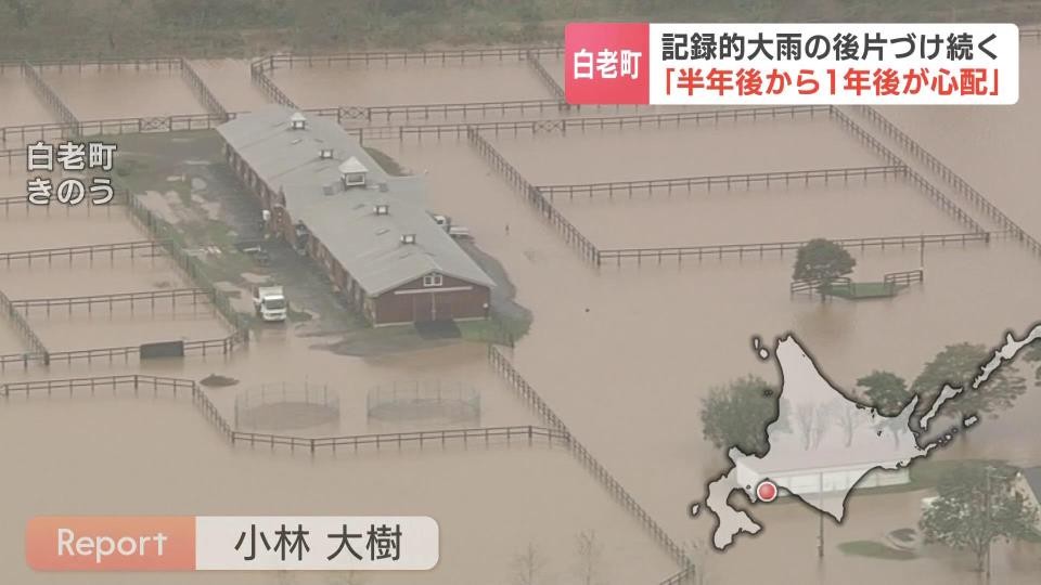 10月1日の記録的な大雨で、冠水などの被害が相次いだ北海道白老町。一夜明けた2日も、後片付けに追われました。