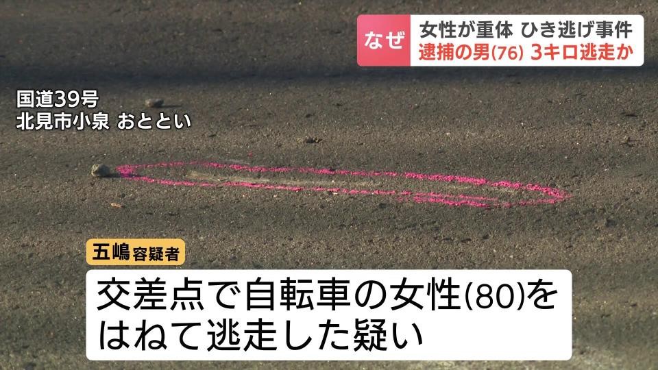 9月30日、北海道北見市で女性が車にはねられて重体となったひき逃げ事件で、逮捕された男が現場から約3キロ逃走していたことがわかりました。