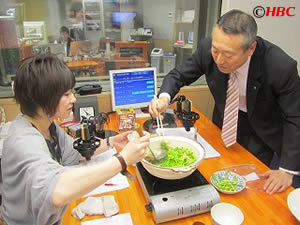 | 月曜日は「KAMA、カマ」こと、鎌田強アナウンサー(初)! カーナビクッキングでは、ふるさと・秋田名物「きりたんぽ鍋」を紹介しました♪ なんとスープもきりたんぽも鎌田家手作り!美味しかったです…(´ω`) 鎌田さん、ありがとうございましたー♪またお願いします! |