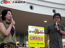 青い空!広いレラ! バーゲンの波にノラないと!!という訳で 気持ちの良い夏風を感じながら久しぶりの 公開生放送(今年初!!) カーナビラジオ午後一番 in千歳アウトレットモール“レラ” この日は本当に天気が良く、しかも、 バーゲンということで集まったお客さんの数も 半端じゃありませんでした。 通りすがりのお客さんも巻き込んで 会場は大盛り上がり!!