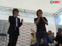 今年も大好評でした「HBCラジオまつり2009」!札幌駅南口まで来てくれた皆さん!本当にありがとうございました。 で、ラジオまつりの中、公開生放送でお送りしたのが“HBCのど自慢”司会はこの2人!YASU&山根!! 山根あゆみはこの日が札幌での初となる公開生放送なんです!! 番組のタイトルを見て「何か聞いた事があるなぁ〜」という方、細かい事は気せず、 “まつり”に相応しい超豪華なステージをご覧あれ!!!