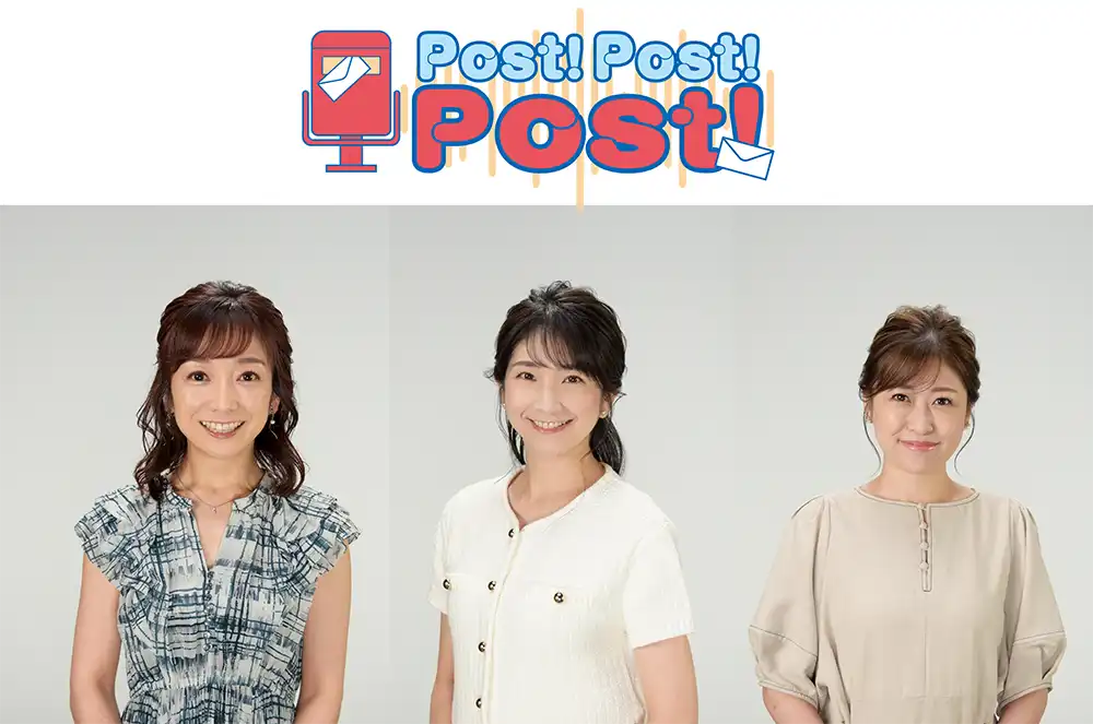 佐藤彩、堰八紗也佳、室谷香菜子、3人のアナウンサーが週替わりで登場。「みなさんからの日常メッセージ」「聞きたい音楽」「私のお気に入り」の3つを、ラジオをお聴きのみなさんのお耳にPOST!お届けします。