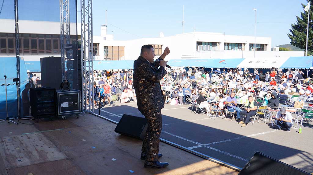メークイン100周年を記念したイベントにも参加し、町民の皆さんとふれあい、熱唱を届けます。なんと、重さ約200キロにも及ぶ巨大コロッケも登場!