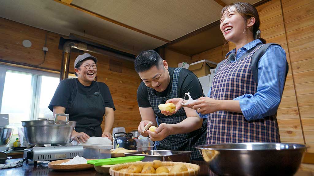 さらに芋ほり体験や、メークインを使用した地元ならではの絶品「ふきんこもち」もご紹介します。